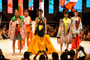 The second half of the show saw the 25 emerging designer finalists from 16 countries present their cohesive edits on stage with Ed Richards from Auckland’s AUT first on the runway. This year there was a very personal approach clearly evident from the young designers with Head Judge and Dunedin born designer, Tanya Carlson, saying that while this year’s finalists were drawn from throughout the world, their work drew upon a common theme. “This year the judges noted many of the collections were inward looking. Designers were nostalgic about their childhoods and also took inspiration from immigration and migration. Additionally they all showed an incredible and inspiring juxtaposition of fabrics and colour.”