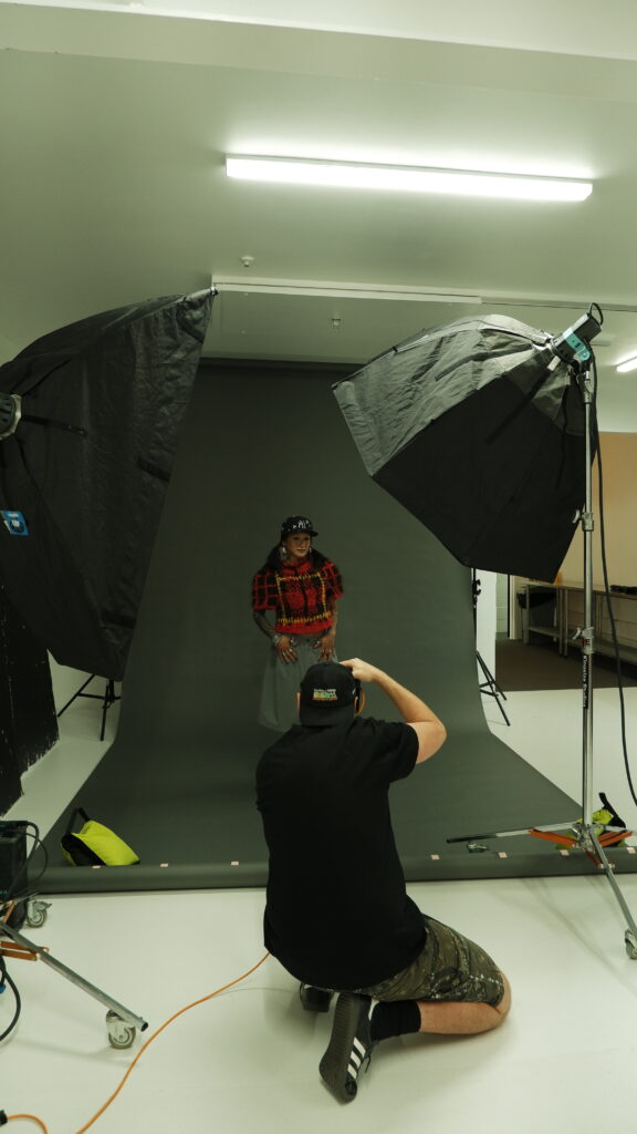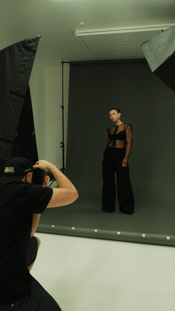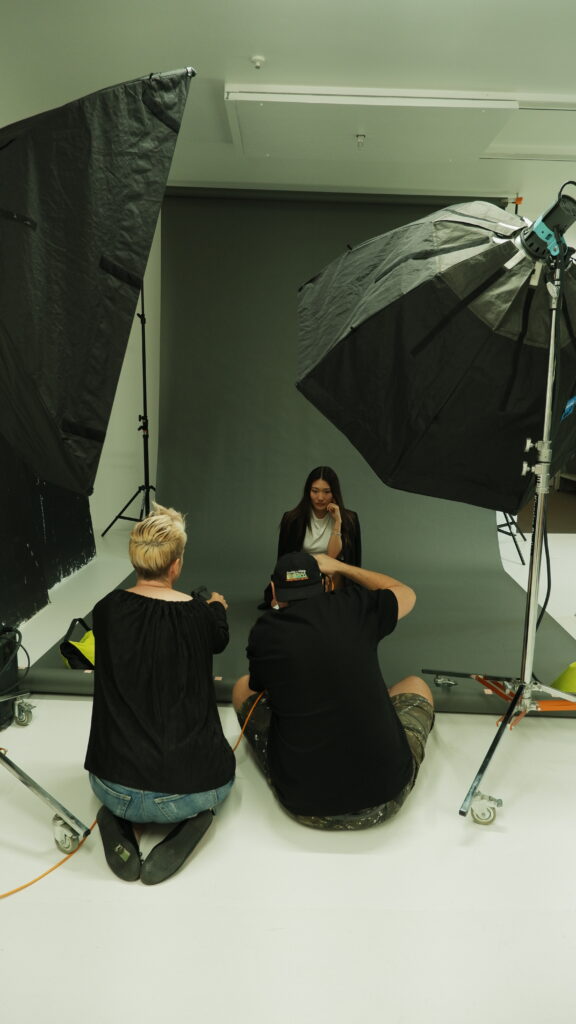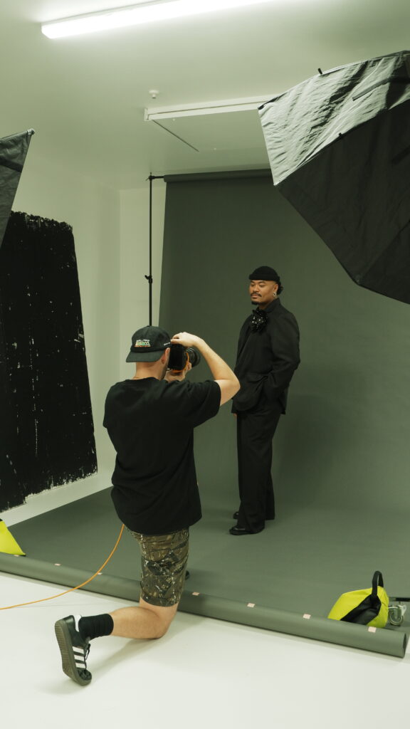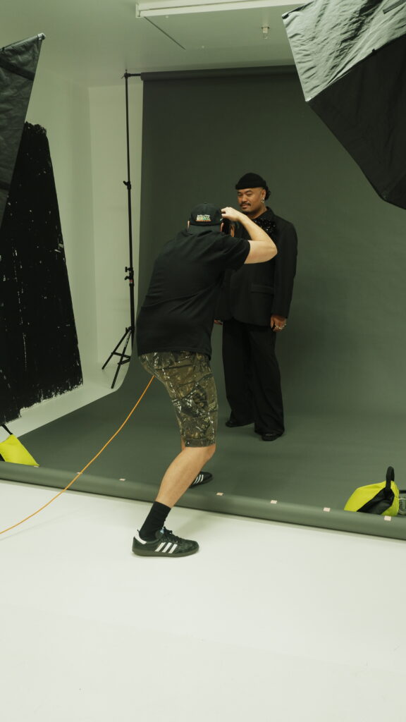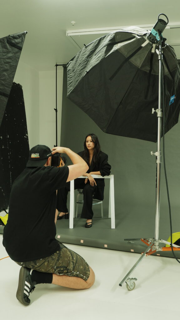 This BTS gallery offers a glimpse into the raw, unfiltered process: no stylist, no glam team; just two lights, a backdrop and Guy’s unmistakably sharp eye. The resulting portraits distill energy, spirit and creativity in their purest form, and we’re deeply grateful to Guy for using his decades of experience to shape how we see the leaders redefining Aotearoa’s fashion landscape.
