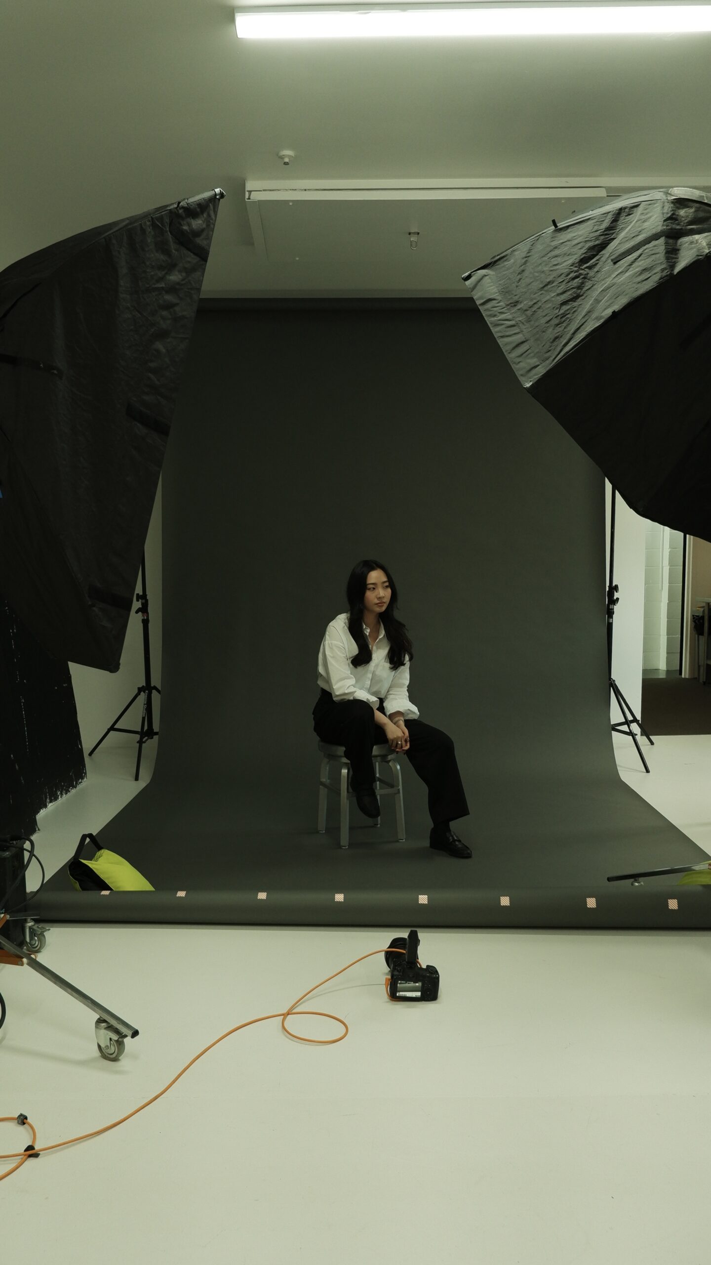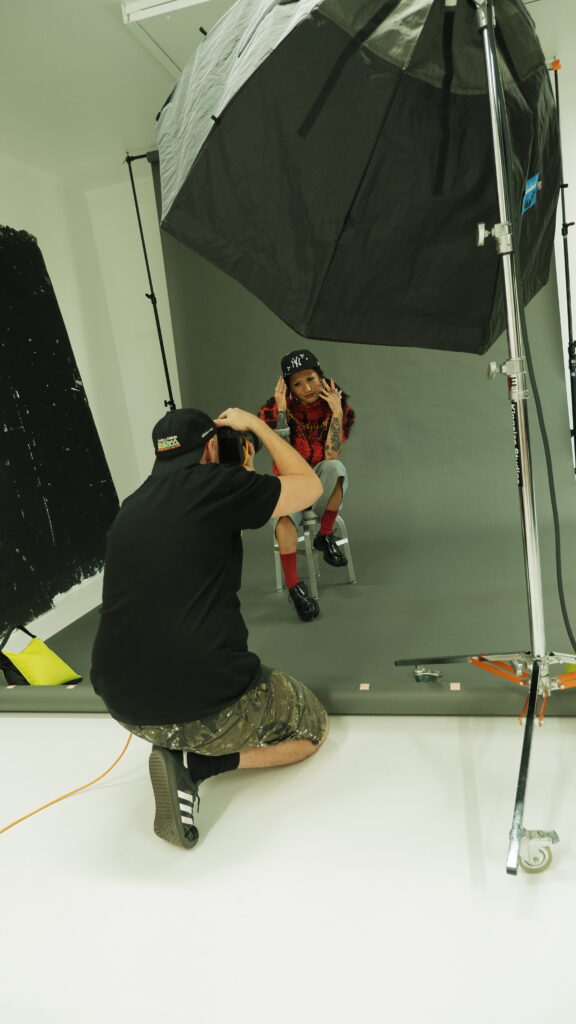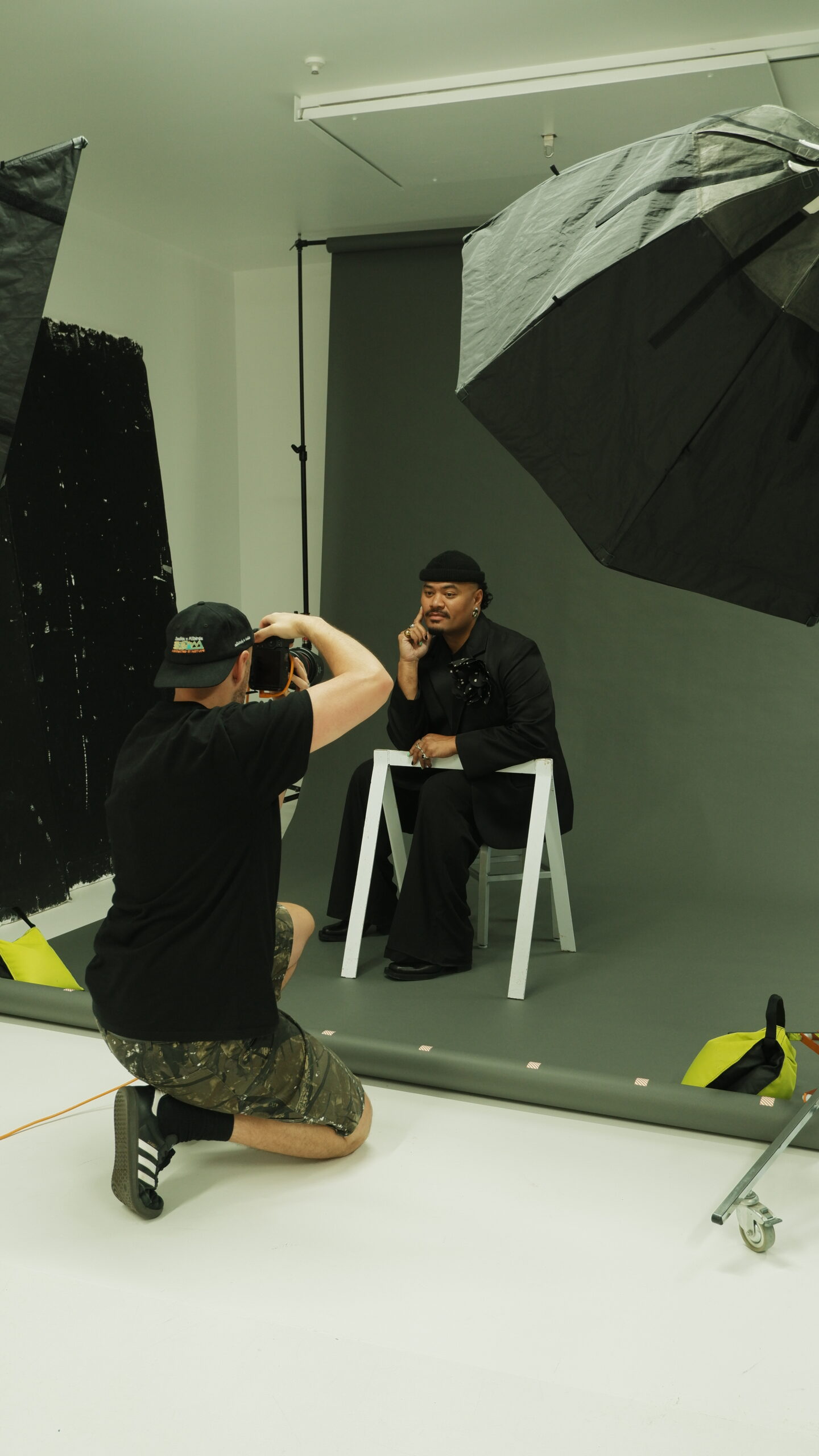This BTS gallery offers a glimpse into the raw, unfiltered process: no stylist, no glam team; just two lights, a backdrop and Guy’s unmistakably sharp eye. The resulting portraits distill energy, spirit and creativity in their purest form, and we’re deeply grateful to Guy for using his decades of experience to shape how we see the leaders redefining Aotearoa’s fashion landscape.