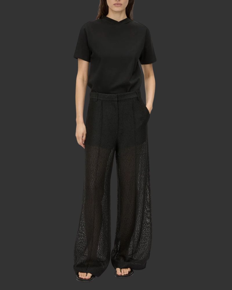 Play with proportions: Pair a sheer top with a tailored blazer or a strong bottom (e.g. wide-leg trousers or leather pants) so the sheer piece doesn’t dominate.