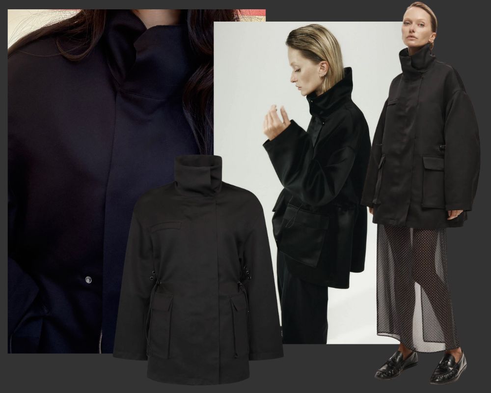 The satin fabric and structure of this a stunning silhouette and really the perfect transeasonal piece of outerwear I own. The perfect throw on over everything from tailored pieces to outerwear.