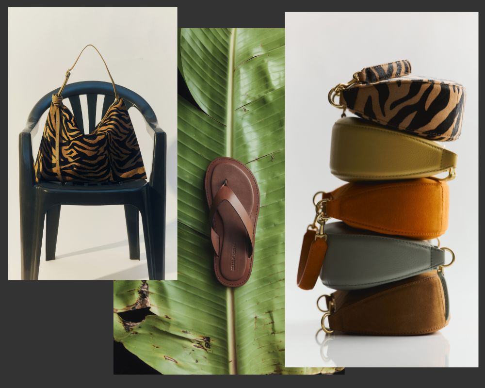 The collection explores transformation and time through evolved textures and tones: think Ziger Calf Hair (a zebra-tiger hybrid of sorts), structured Black Crocotile, and sun-bleached Kina Croc. Buttery Calf Nappa comes in soft green, beige, and deep blue, while a vibrant Carrot Suede brings the pop. The return of the Rush capsule in raffia signals an easy-breezy summer ahead.
