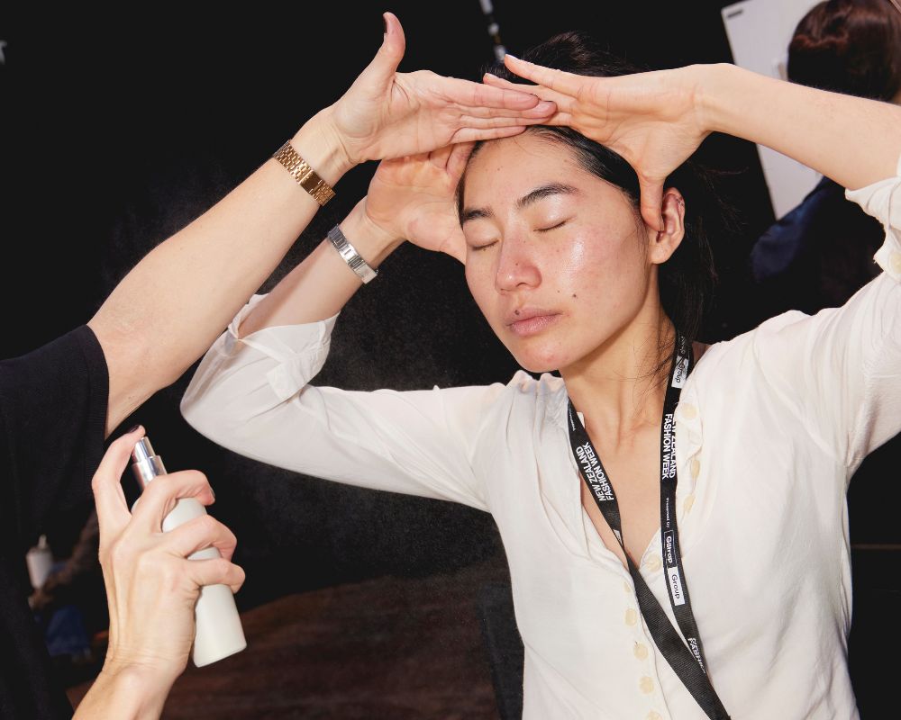 Backstage at Hogan’s show in Shed 10, RAAIE unveiled its latest innovation: the Tranquillity Water Activating Mist. Powered by volcanic thermal water, the mist gave models a dose of deep hydration, ensuring they stepped onto the runway with glowing, luminous skin.