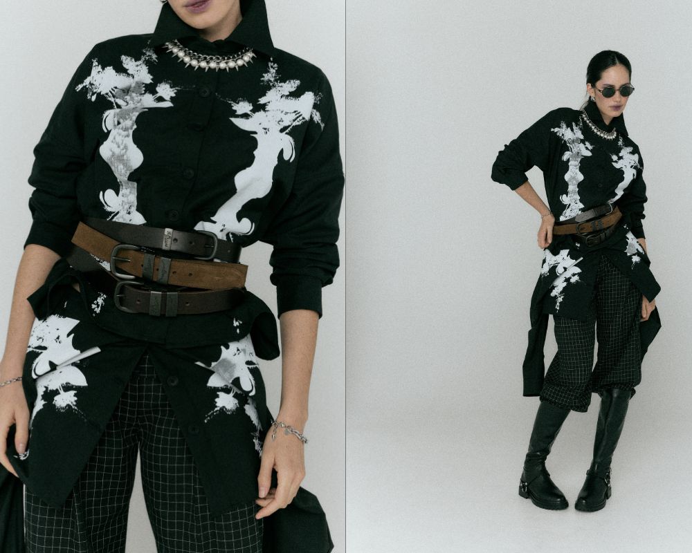 Adrion Atelier explores the quiet dialogue between structure and fluidity through garments that blend soft tailoring with subtle deconstruction. The collection references workwear silhouettes while maintaining a refined elegance, allowing the wearer to shift between strength and ease.