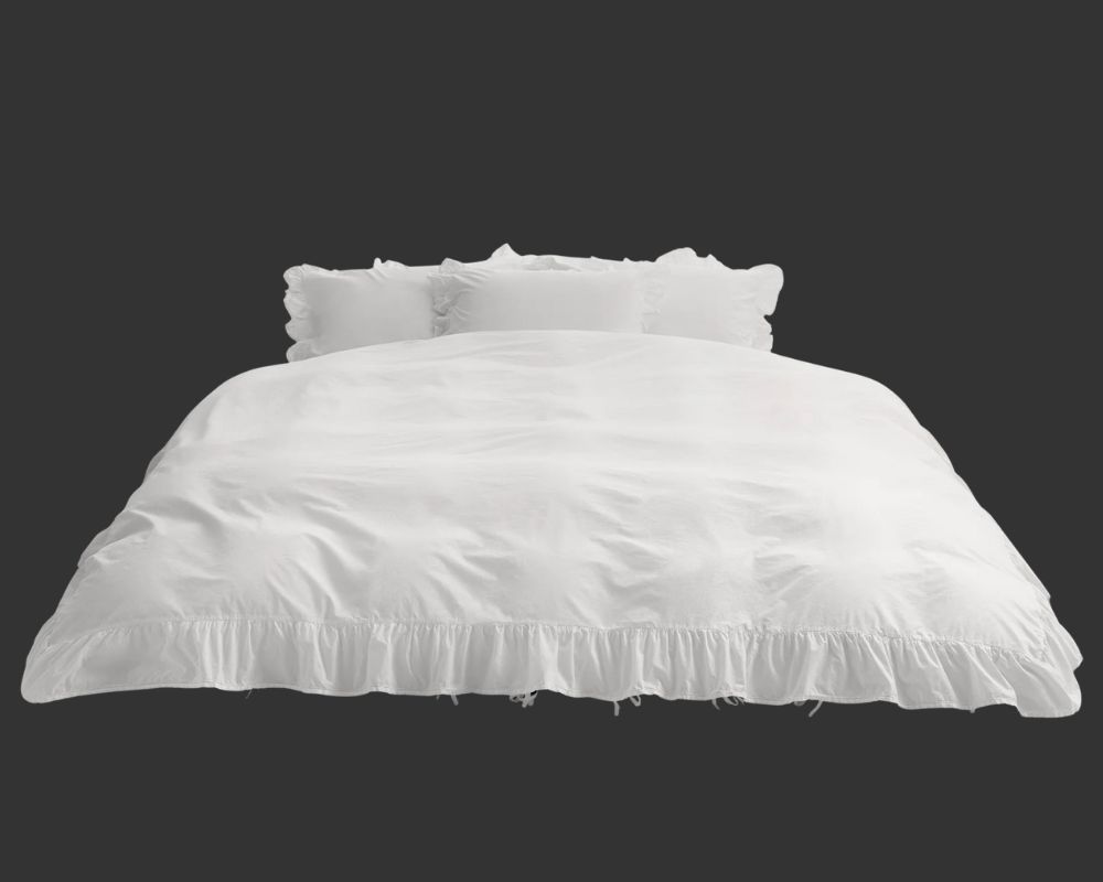 Tekla – Broderie Anglaise Duvet Cover “Elodie” in Broken White – $728 from Simon James