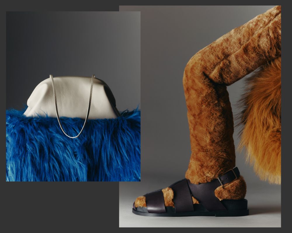 The palette anchors the fantasy in something tactile and real. Java – that deep, earthy brown – grounds the collection across Calf Nappa, Ironed Calf, and glossy Eel-embossed leather. Porcelain white softens. Dune Suede steadies. Then the creatures emerge in Tamarillo vermillion, Frog green suede, and Dusk blue Lamb Nappa with silver hardware that catches the light just so.